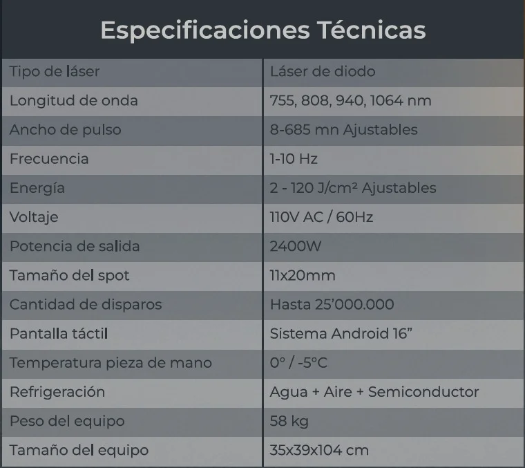 Este método ofrece un enfoque gradual y seguro para reducir el vello no deseado, garantizando resultados duraderos. El equipo incluye accesorios esenciales —como gafas para operador y paciente, sistema de interlock, punta fina y pedal— que refuerzan la seguridad y la eficacia en cada sesión